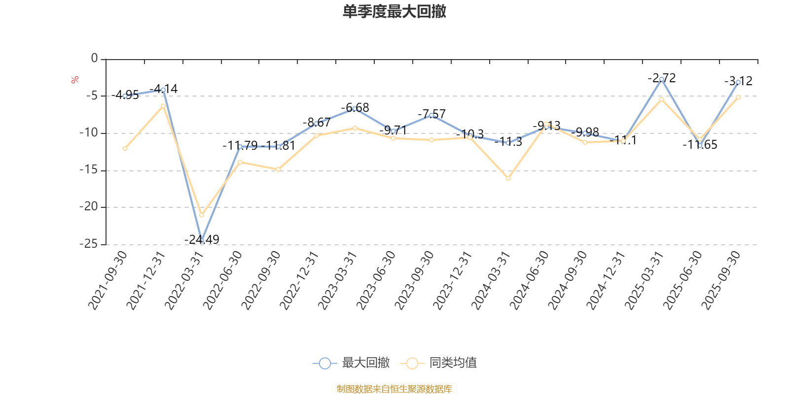 截至10月27日,基金近三年最大回撤为23.5%,同类可比基金排名15/177。单季度最大回撤出现在2022年一季度,为24.49%。