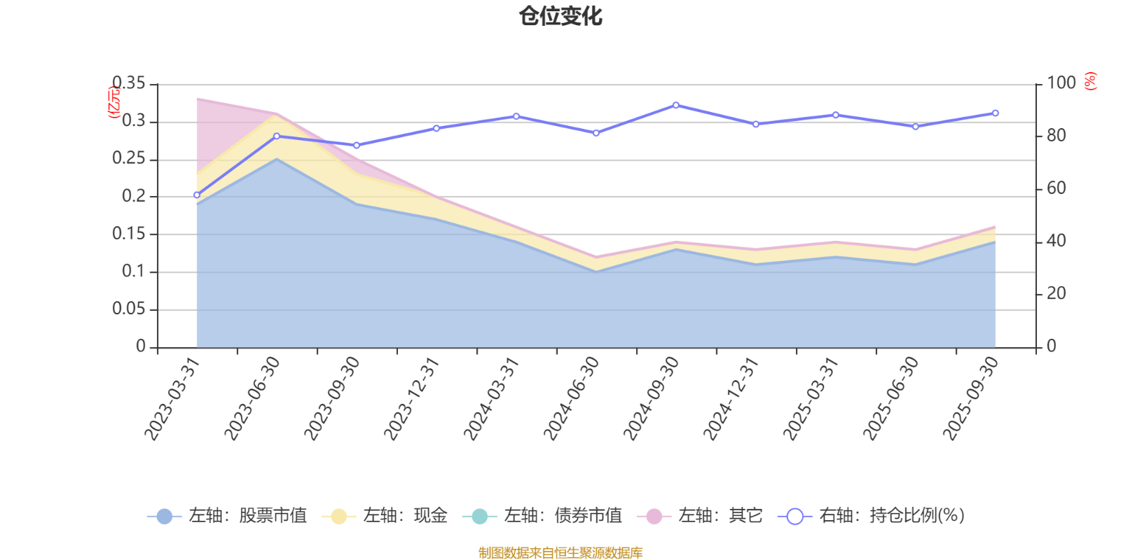 据定期报告数据统计,成立以来平均股票仓位为82.28%,同类平均为87.09%。2024年三季度末基金达到91.98%的最高仓位,2023年一季度末最低,为57.9%。