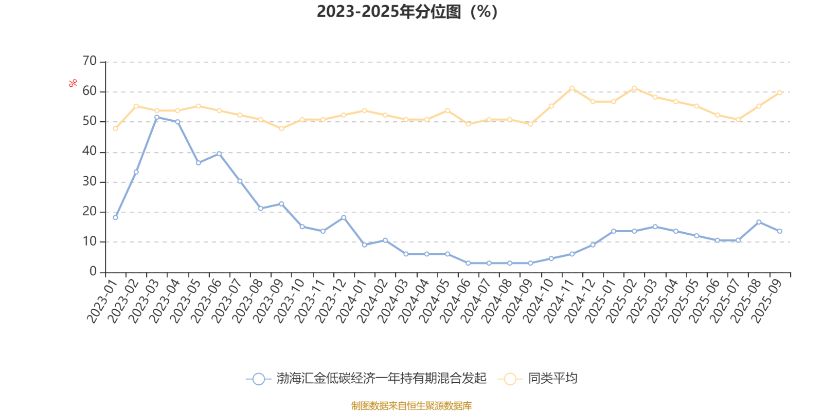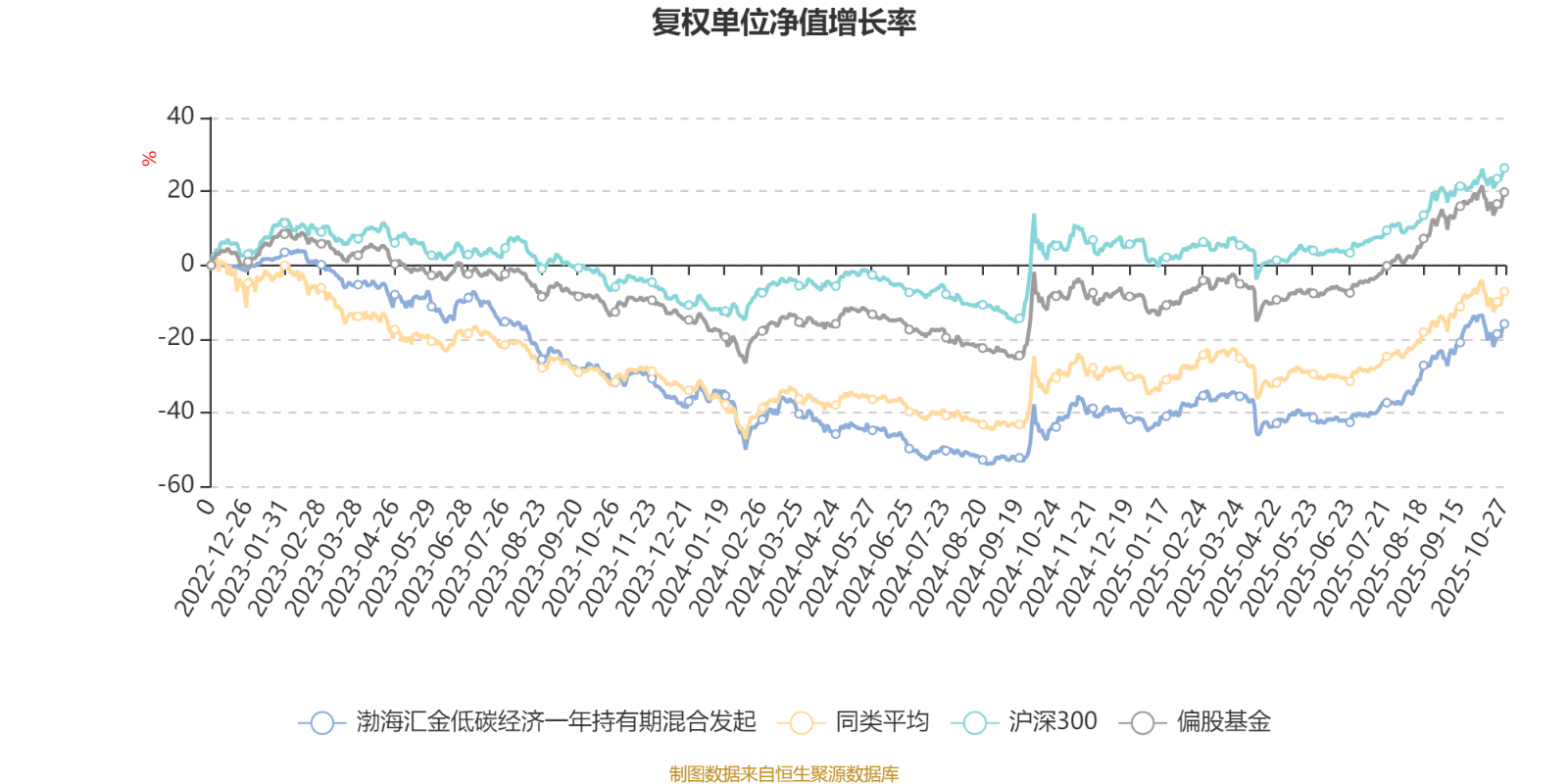 截至10月27日,渤海汇金低碳经济一年持有期混合发起近三个月复权单位净值增长率为34.37%,位于同类可比基金14/100;近半年复权单位净值增长率为44.56%,位于同类可比基金18/99;近一年复权单位净值增长率为44.36%,位于同类可比基金19/90。