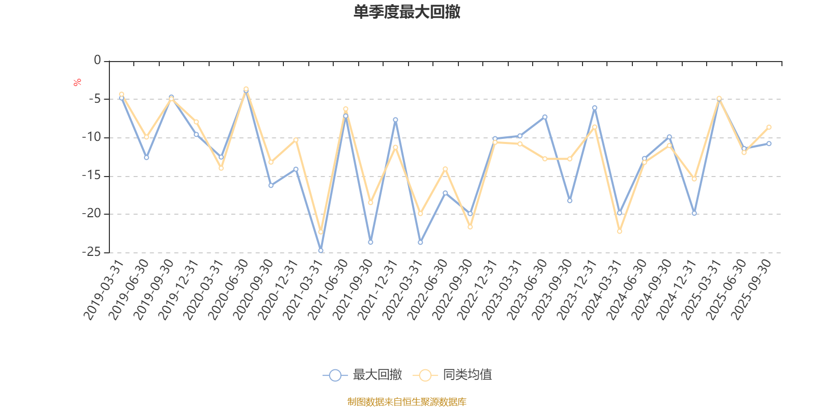 截至10月27日,基金近三年最大回撤为24.99%,同类可比基金排名0/75。单季度最大回撤出现在2021年一季度,为24.73%。