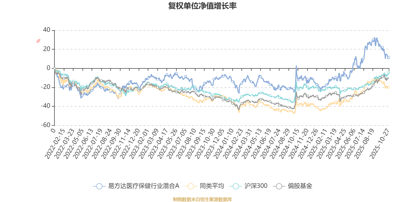 截至10月27日,易方达医疗保健行业混合A近三个月复权单位净值增长率为-6.63%,位于同类可比基金84/106;近半年复权单位净值增长率为20.11%,位于同类可比基金61/104;近一年复权单位净值增长率为22.18%,位于同类可比基金63/101;近三年复权单位净值增长率为37.52%,位于同类可比基金10/75。