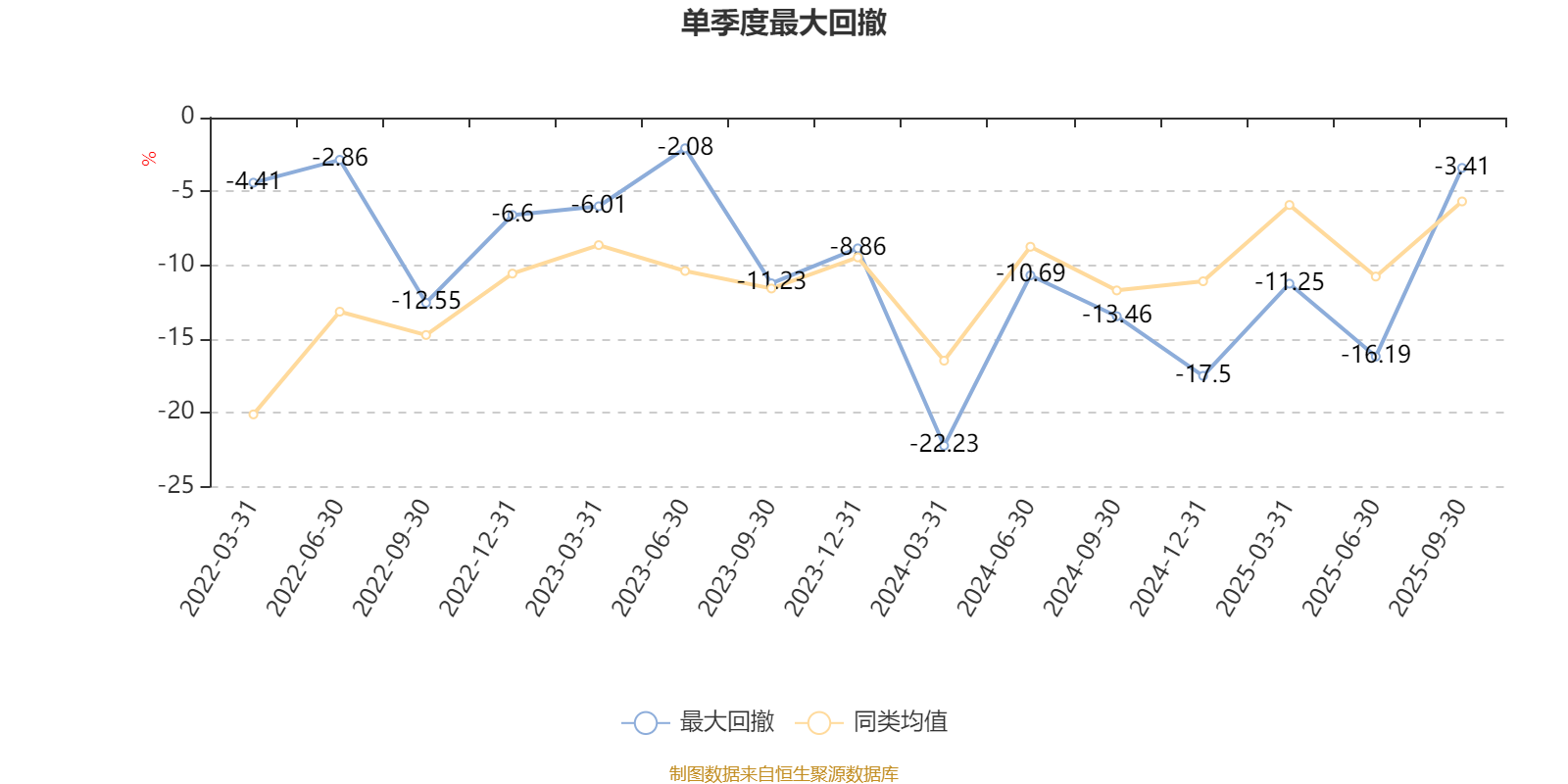 截至10月27日,基金近三年最大回撤为31.76%,同类可比基金排名165/506。单季度最大回撤出现在2024年一季度,为22.23%。
