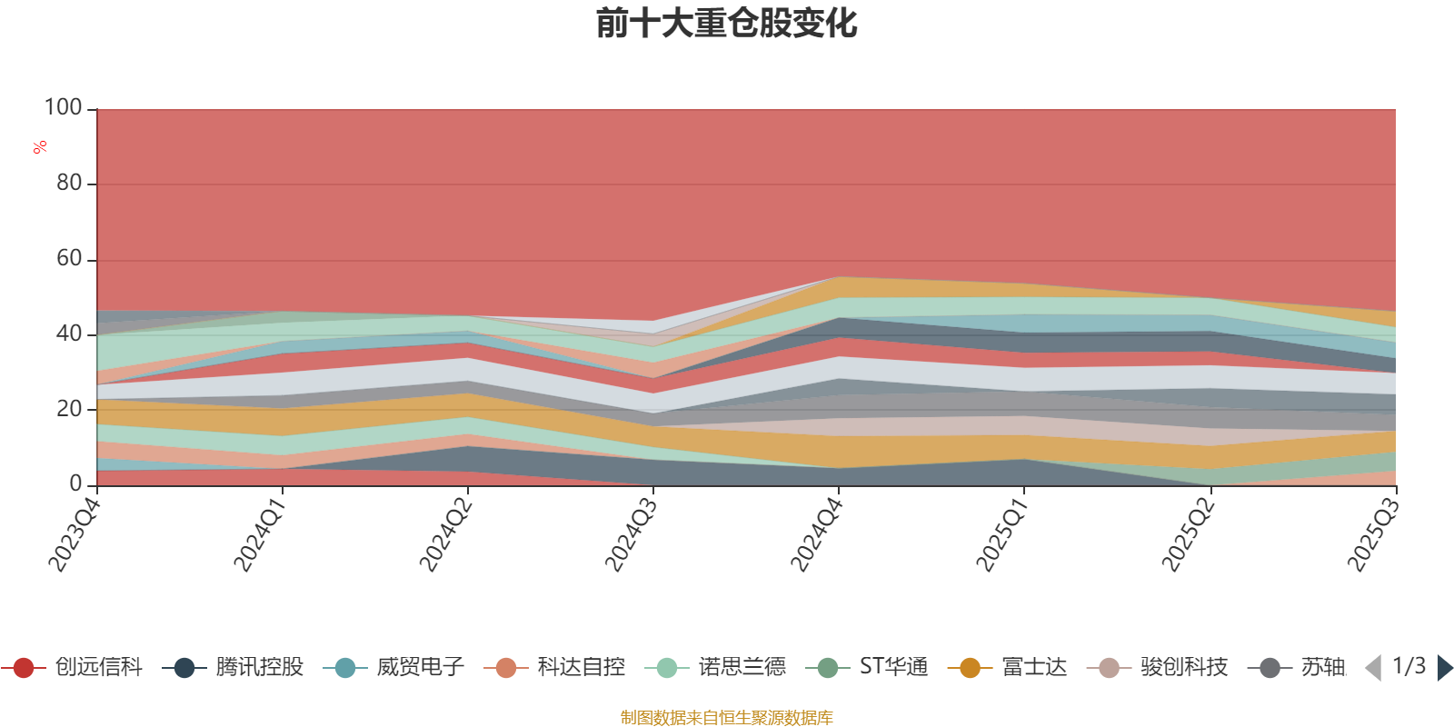 截至2025年三季度末,基金十大重仓股分别是凯德石英、富士达、纳科诺尔、ST华通、苏轴股份、贝特瑞、奥迪威、吉冈精密、科达自控、同力股份。