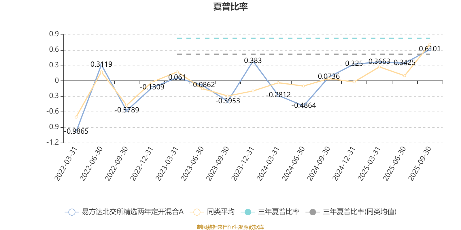 截至9月30日,基金近三年夏普比率为0.828,位于同类可比基金82/518。