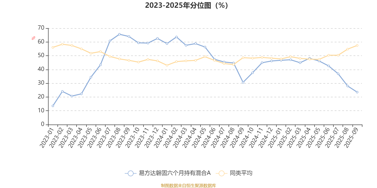 通过所选区间该基金净值增长率分位图,可以观察该基金与同类基金业绩比较情况。图为坐标原点到区间内某时点的净值增长率在同类基金中的分位数。