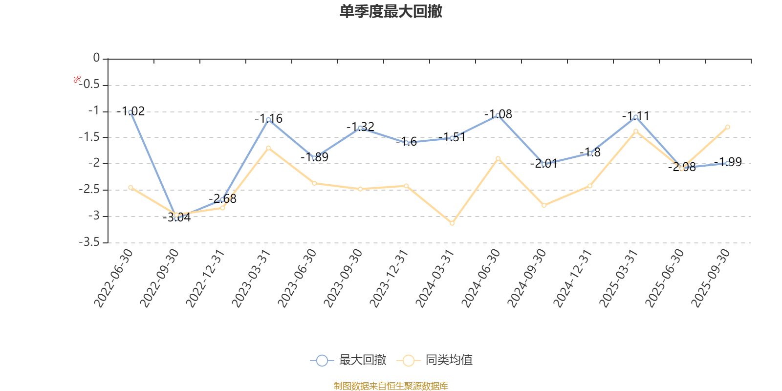 截至10月27日,基金近三年最大回撤为4.03%,同类可比基金排名120/535。单季度最大回撤出现在2022年三季度,为3.04%。