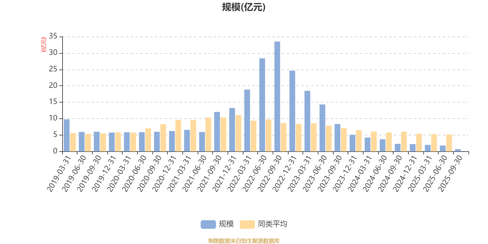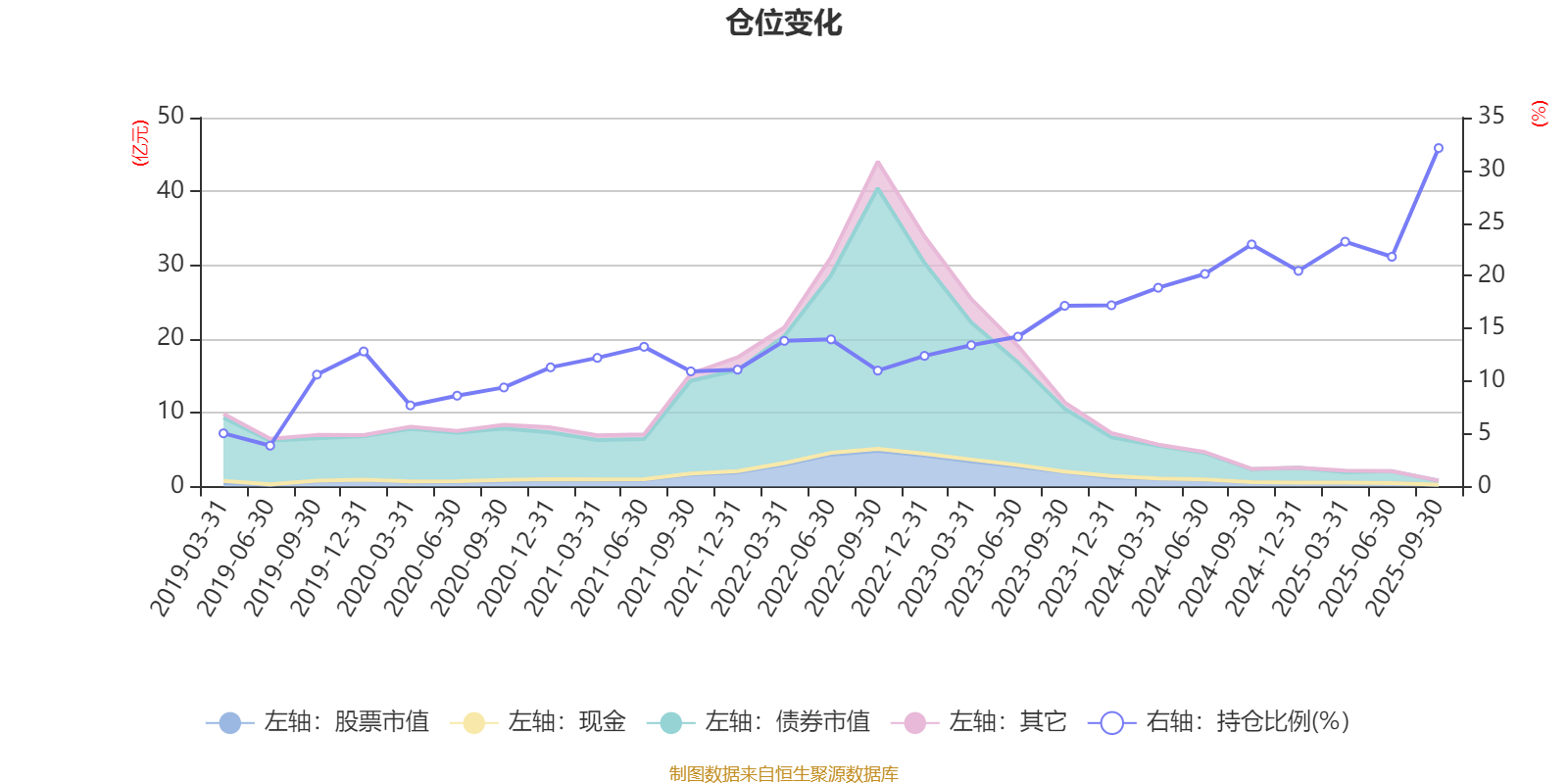 据定期报告数据统计,近三年平均股票仓位为19.5%,同类平均为72.14%。2025年三季度末基金达到32.11%的最高仓位,2019年上半年末最低,为3.88%。
