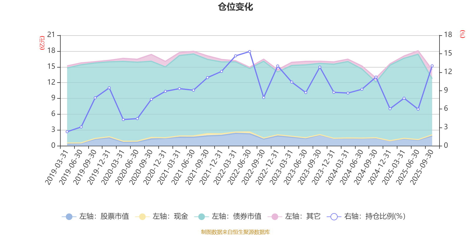 据定期报告数据统计,近三年平均股票仓位为9.61%,同类平均为72.14%。2022年上半年末基金达到15.35%的最高仓位,2019年一季度末最低,为2.3%。