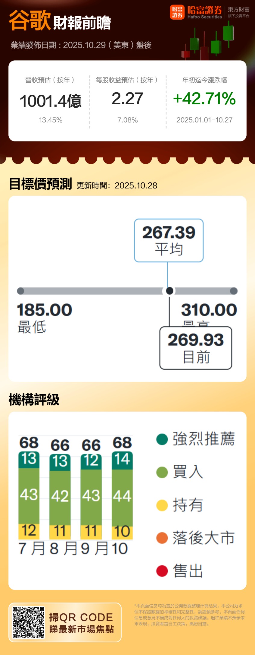 本次Q3财报,市场不仅期待Alphabet跨越千亿营收的门槛,更希望从其管理层的表态中验证:巨额的AI投资能否转化为持续的竞争优势和盈利增长。在华尔街的一片看好声中,如何平衡高投入与高增长,并应对日益复杂的监管环境,将是Alphabet未来能否再创新高的关键。