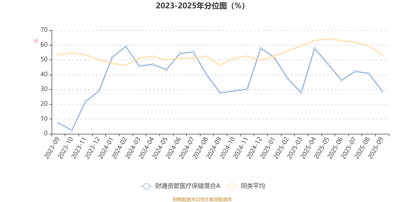 通过所选区间该基金净值增长率分位图,可以观察该基金与同类基金业绩比较情况。图为坐标原点到区间内某时点的净值增长率在同类基金中的分位数。