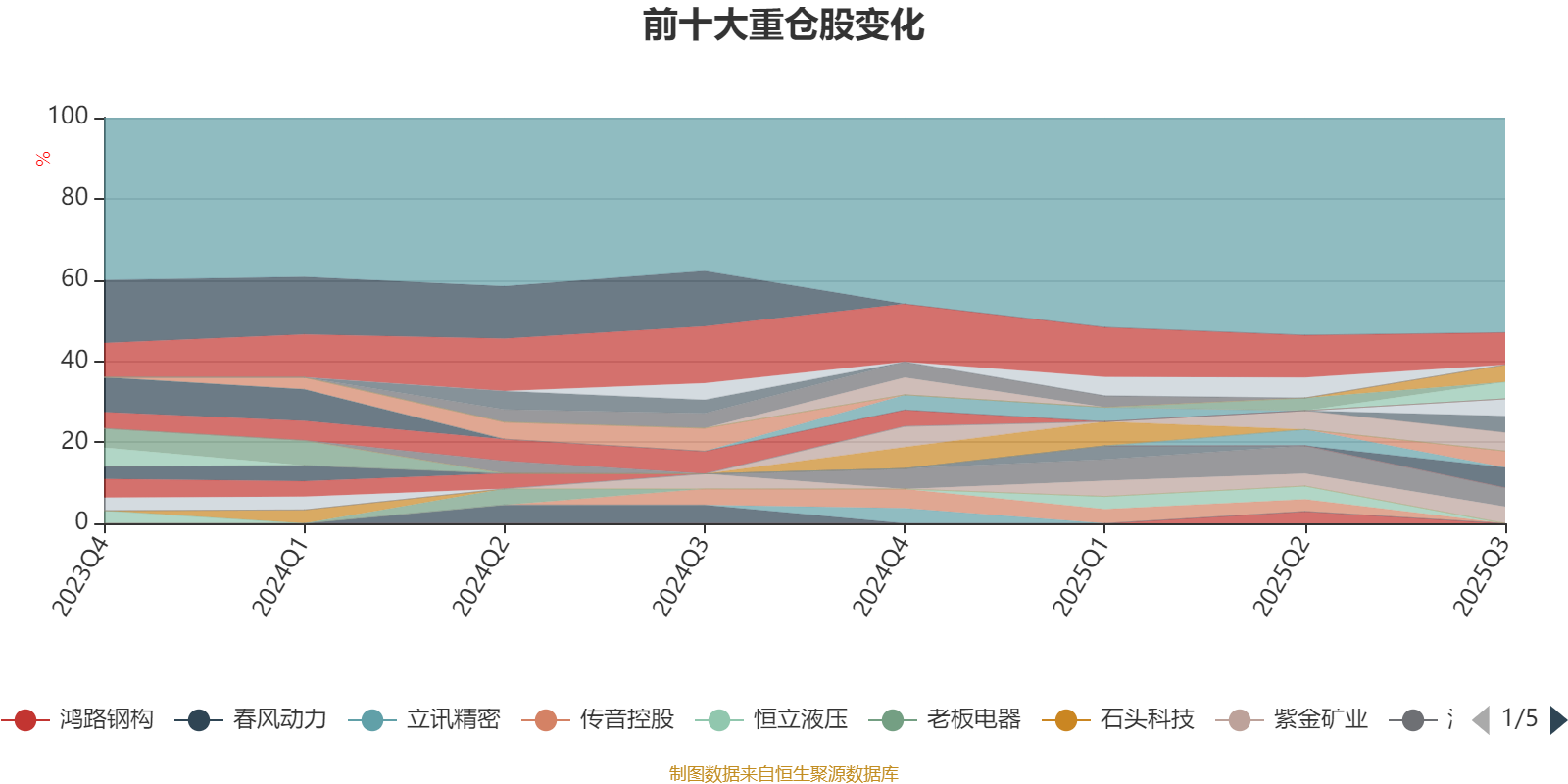 截至2025年三季度末,基金十大重仓股分别是华峰铝业、宁德时代、海大集团、深南电路、欣旺达、药明康德、银轮股份、紫金矿业、巨星科技、海力风电。