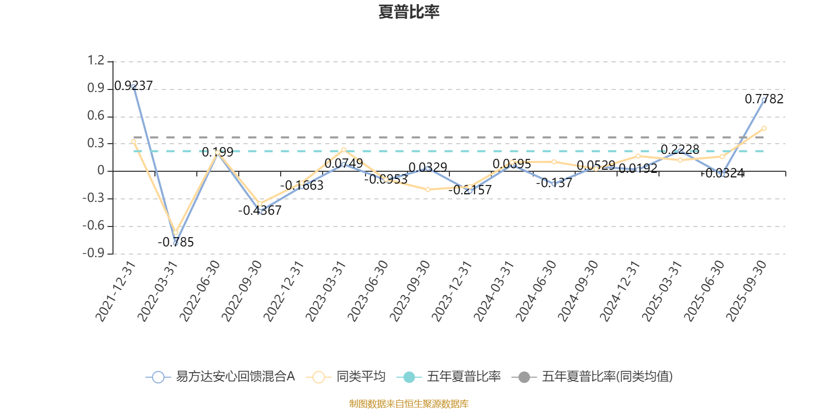 截至9月30日,基金近三年夏普比率为0.4758,位于同类可比基金381/553。