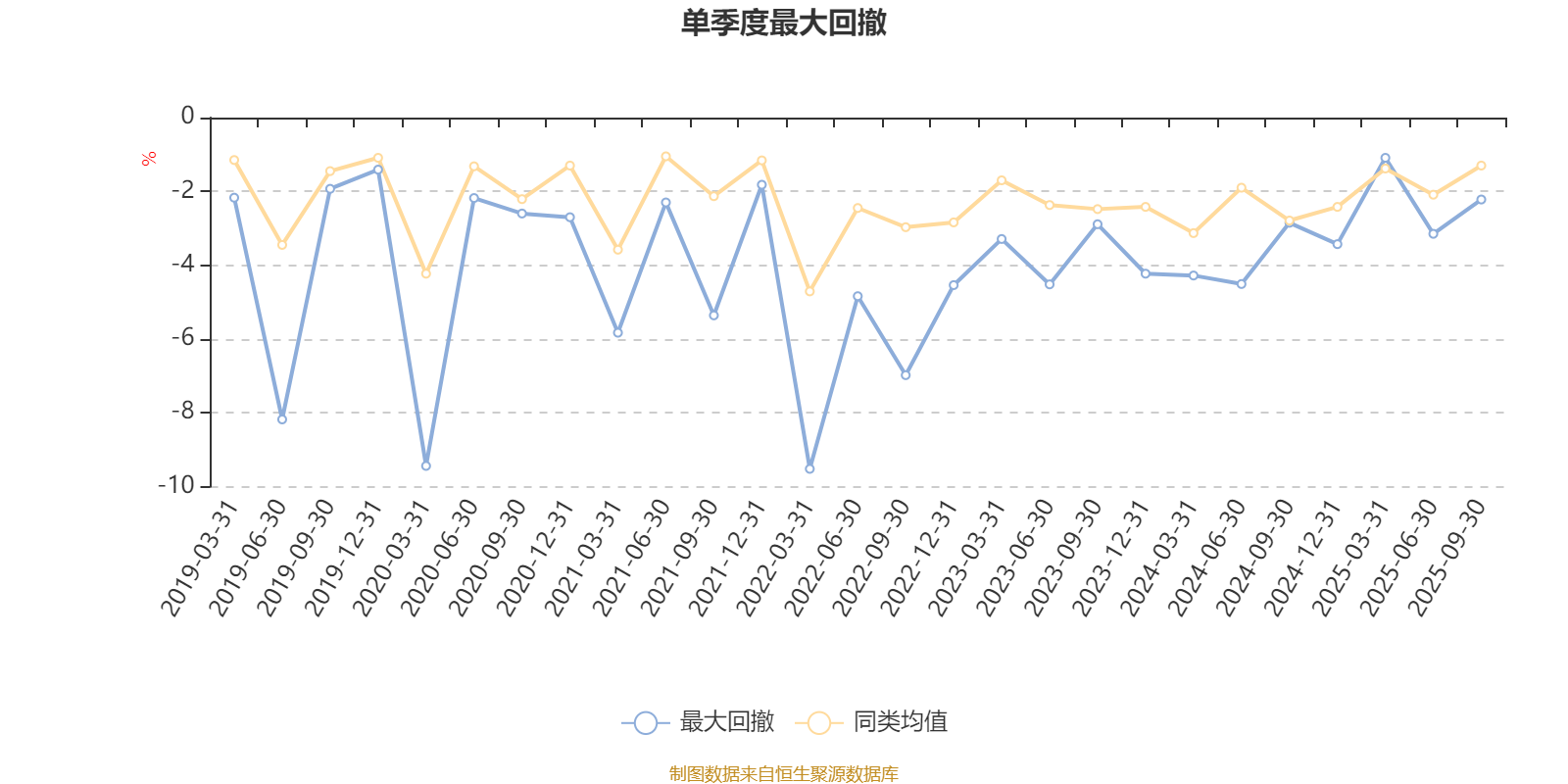 截至10月27日,基金近三年最大回撤为8.79%,同类可比基金排名368/530。单季度最大回撤出现在2022年一季度,为9.52%。