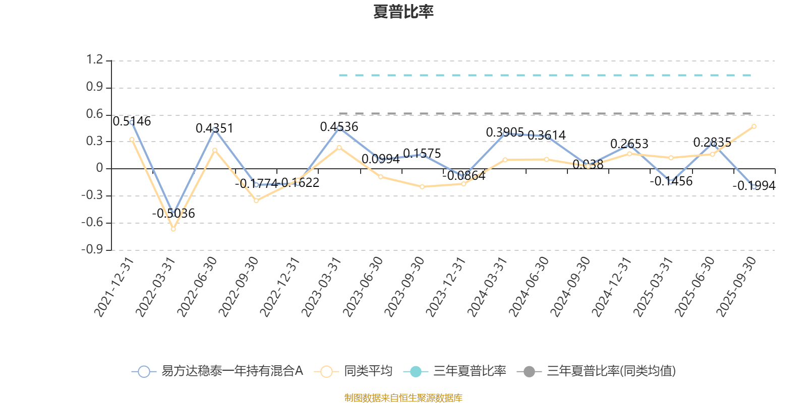 截至9月30日,基金近三年夏普比率为1.0352,位于同类可比基金77/553。