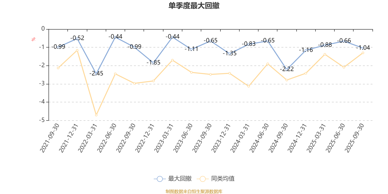 截至10月27日,基金近三年最大回撤为2.22%,同类可比基金排名17/535。单季度最大回撤出现在2022年一季度,为2.45%。