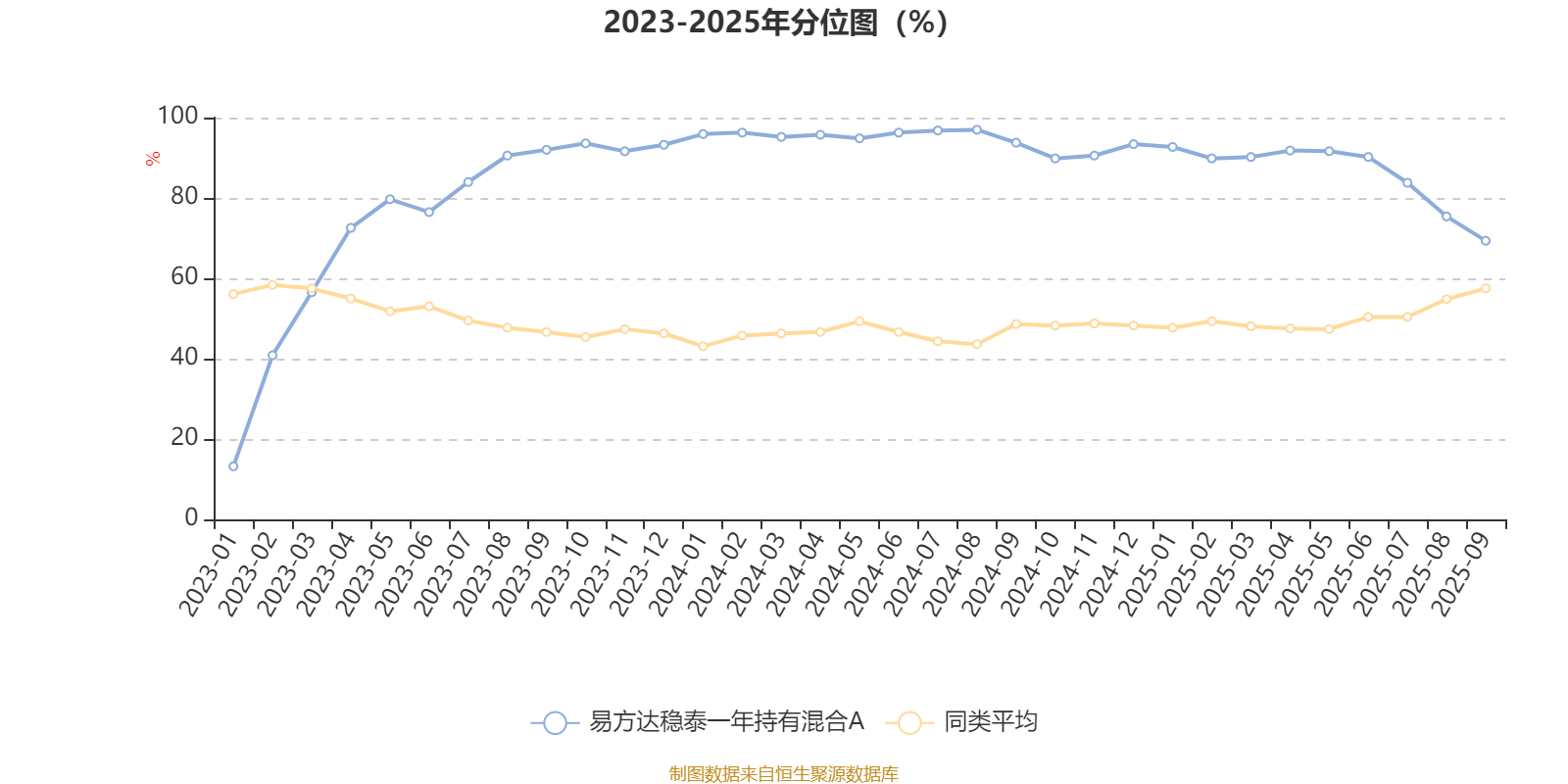 截至10月27日,易方达稳泰一年持有混合A近三个月复权单位净值增长率为0.51%,位于同类可比基金569/629;近半年复权单位净值增长率为1.49%,位于同类可比基金593/629;近一年复权单位净值增长率为3.85%,位于同类可比基金531/623;近三年复权单位净值增长率为14.49%,位于同类可比基金182/557。