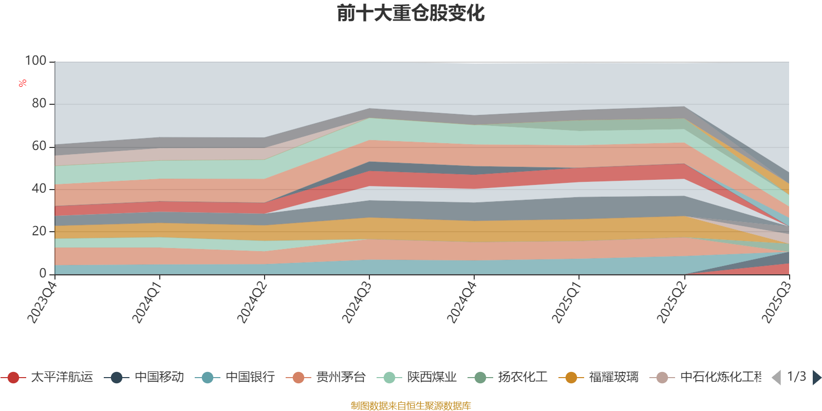 且持股标的较为稳定。截至2025年三季度末,基金十大重仓股分别是京沪高铁、中国移动、东风集团股份、蒙牛乳业、长江电力、太平洋航运、中石化炼化工程、龙源电力、扬农化工、江苏国泰。