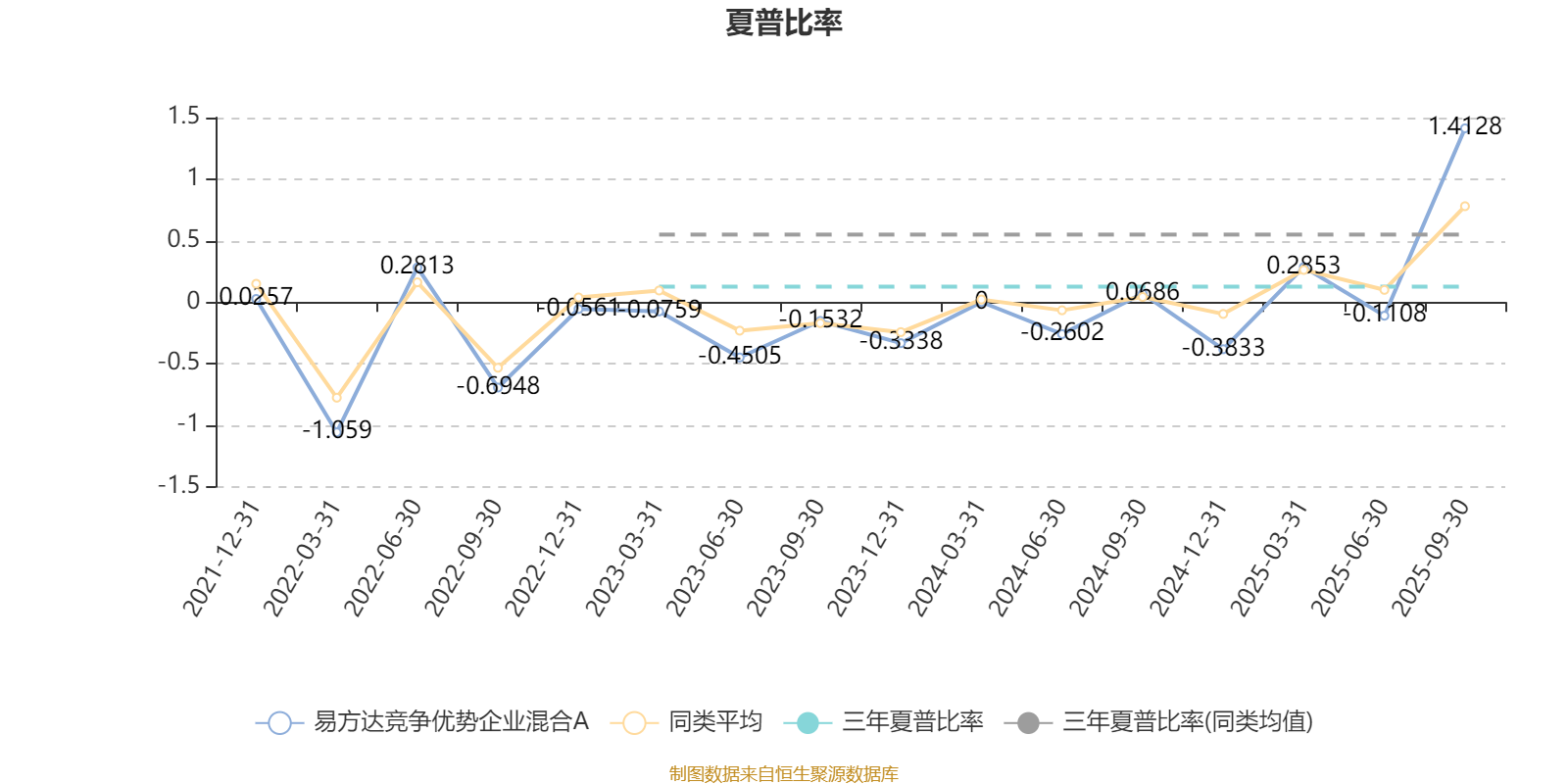 截至9月30日,基金近三年夏普比率为0.1259,位于同类可比基金19/20。