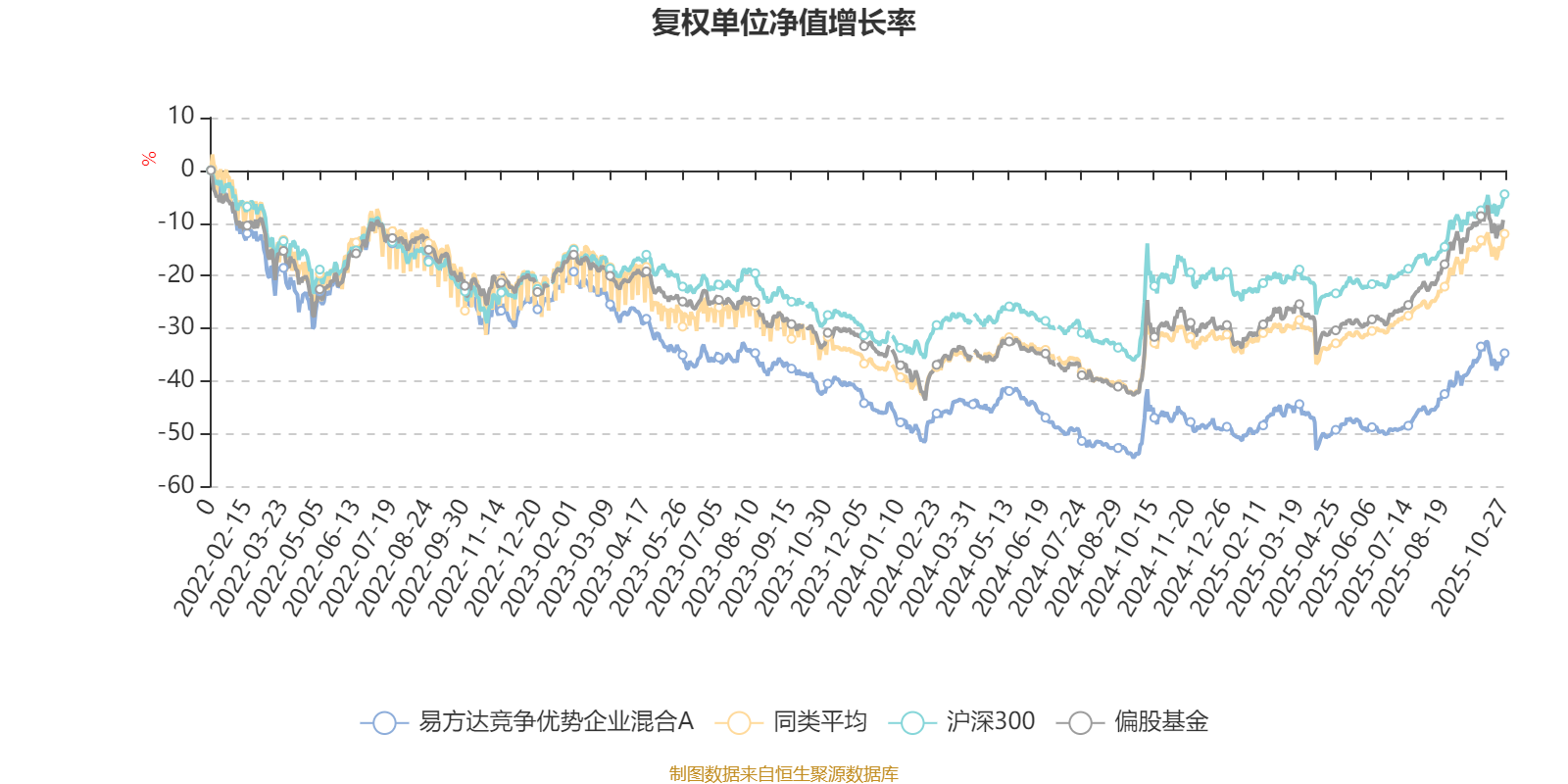 截至10月27日,易方达竞争优势企业混合A近三个月复权单位净值增长率为19.94%,位于同类可比基金8/20;近半年复权单位净值增长率为28.62%,位于同类可比基金9/20;近一年复权单位净值增长率为21.76%,位于同类可比基金10/20;近三年复权单位净值增长率为-7.92%,位于同类可比基金17/19。
