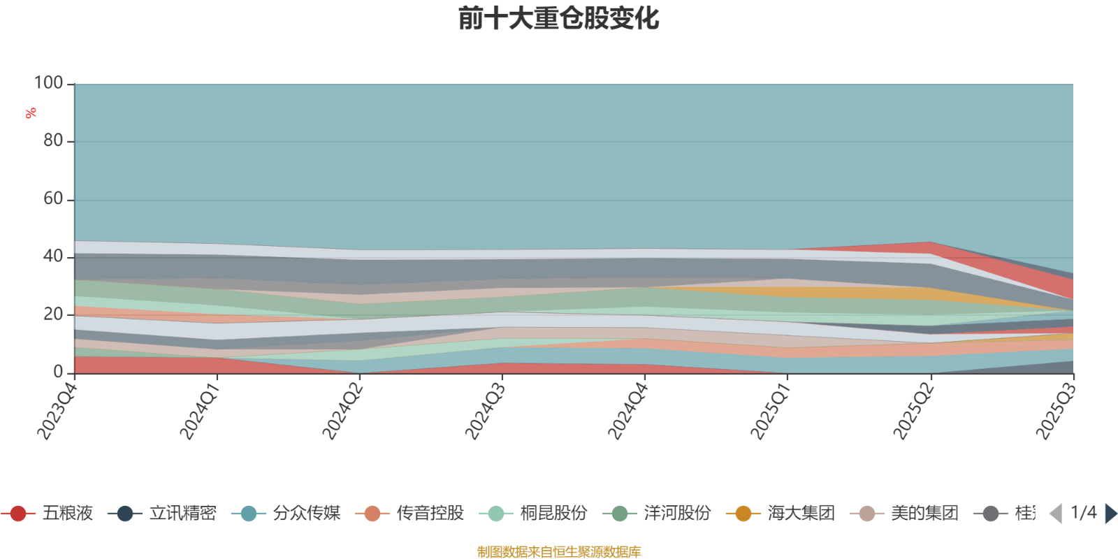 截至2025年三季度末,基金十大重仓股分别是中天科技、立讯精密、分众传媒、长江电力、传音控股、中兴通讯、福耀玻璃、宁德时代、海大集团、聚辰股份。