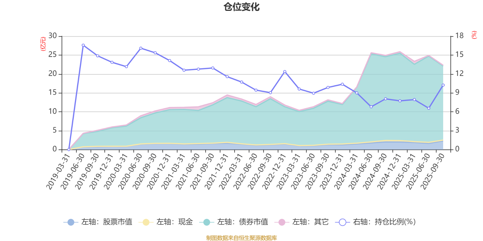 据定期报告数据统计,近三年平均股票仓位为8.96%,同类平均为72.14%。2019年上半年末基金达到16.57%的最高仓位,2025年上半年末最低,为6.56%。