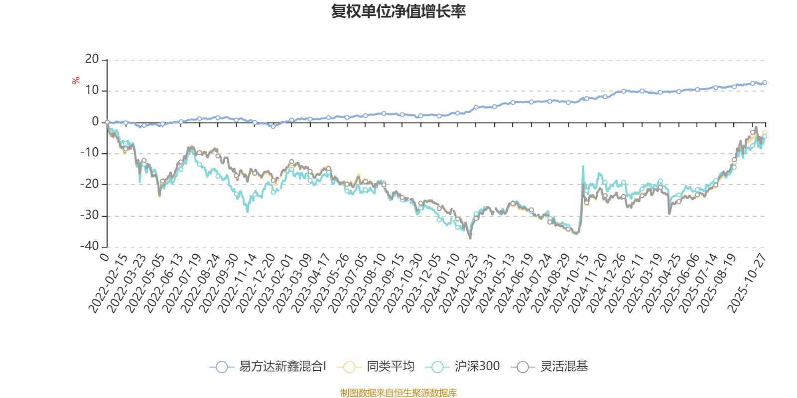 截至10月27日,易方达新鑫混合I近三个月复权单位净值增长率为1.49%,位于同类可比基金1148/1287;近半年复权单位净值增长率为2.63%,位于同类可比基金1229/1287;近一年复权单位净值增长率为4.70%,位于同类可比基金1147/1287;近三年复权单位净值增长率为12.11%,位于同类可比基金722/1286。