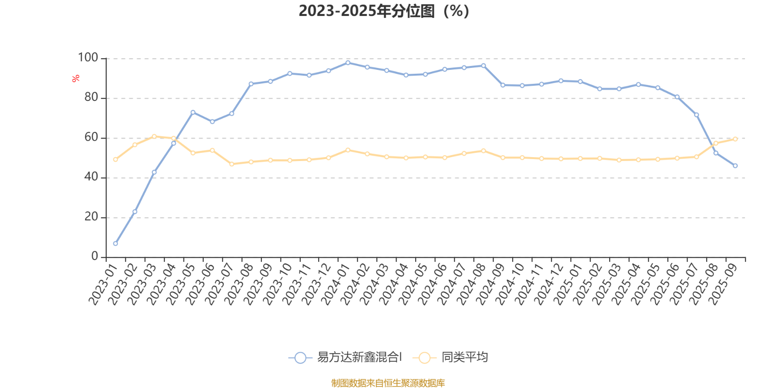 通过所选区间该基金净值增长率分位图,可以观察该基金与同类基金业绩比较情况。图为坐标原点到区间内某时点的净值增长率在同类基金中的分位数。