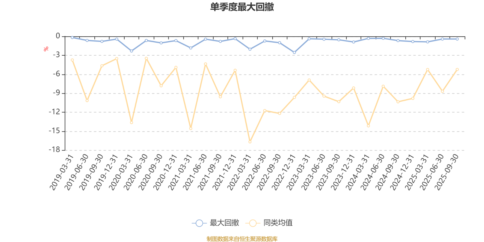 截至10月27日,基金近三年最大回撤为2.09%,同类可比基金排名24/1265。单季度最大回撤出现在2022年四季度,为2.55%。