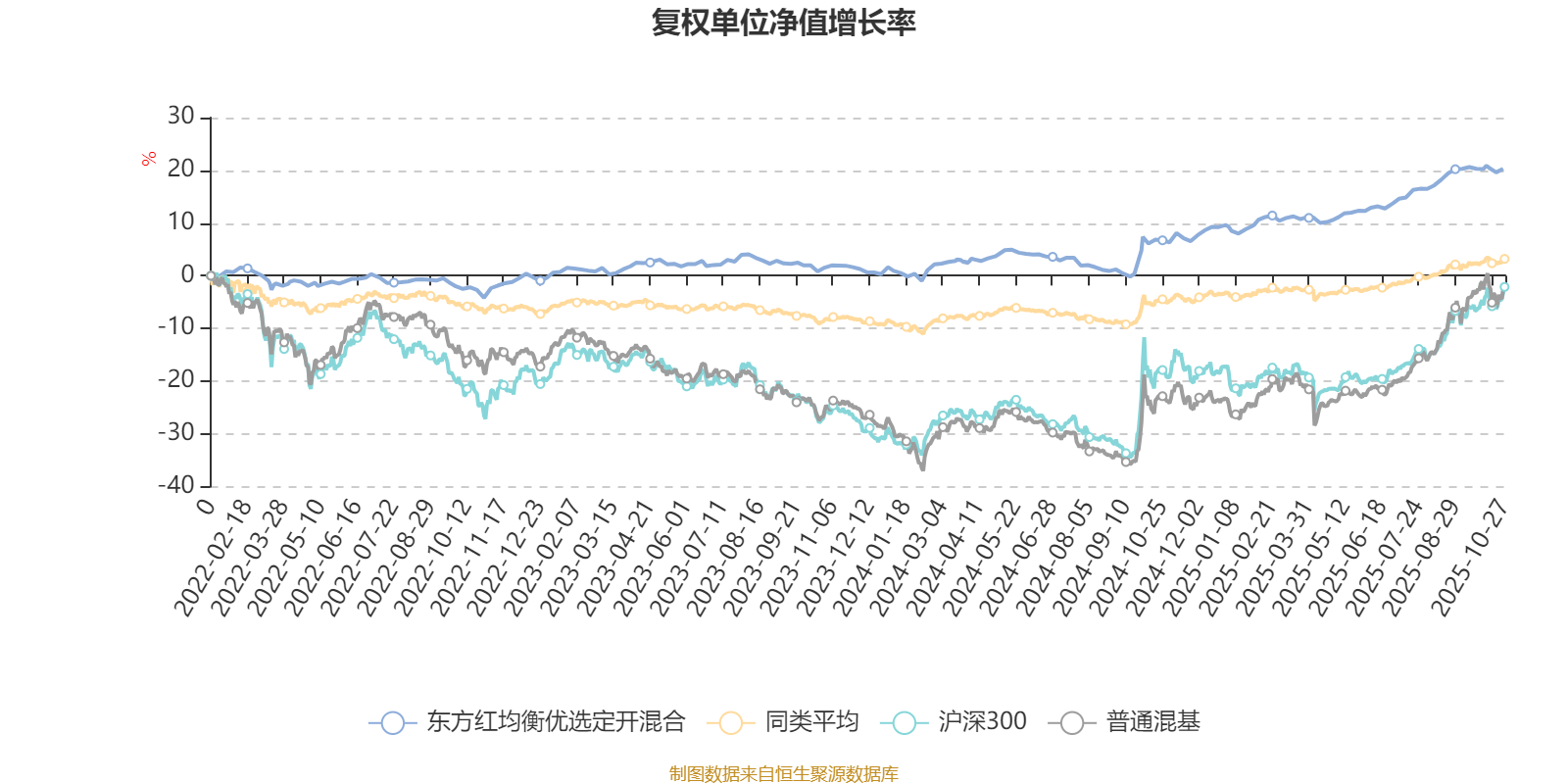 截至10月24日,东方红均衡优选定开混合近三个月复权单位净值增长率为3.45%,位于同类可比基金223/629;近半年复权单位净值增长率为9.19%,位于同类可比基金117/629;近一年复权单位净值增长率为12.56%,位于同类可比基金85/623;近三年复权单位净值增长率为23.65%,位于同类可比基金44/557。