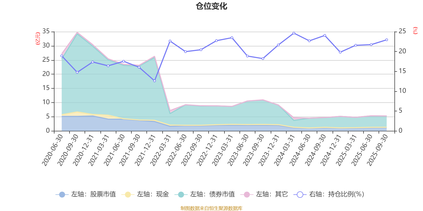 据定期报告数据统计,近三年平均股票仓位为21.87%,同类平均为19.03%。2024年一季度末基金达到24.63%的最高仓位,2021年末最低,为12.61%。