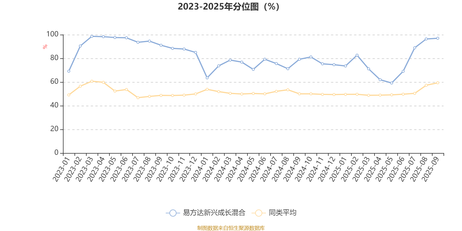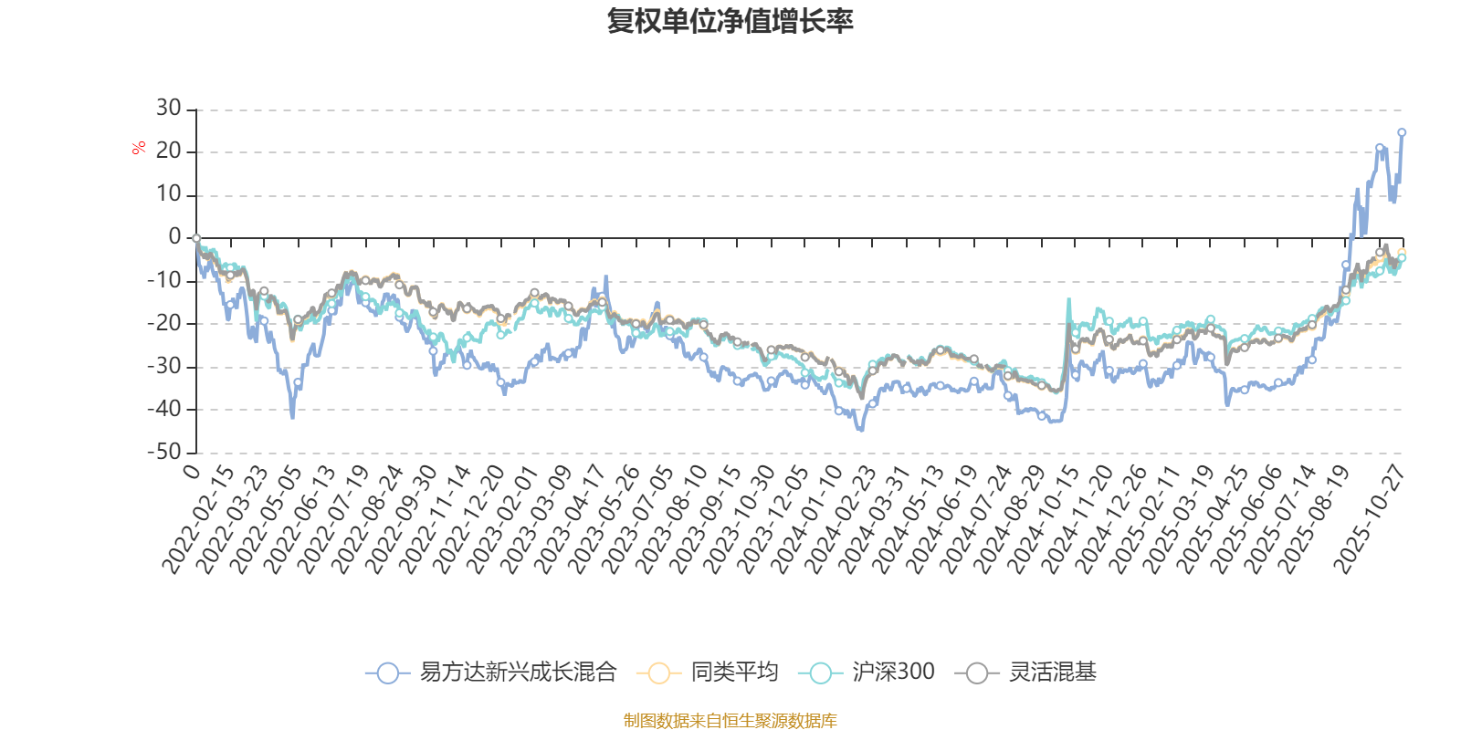 截至10月27日,易方达新兴成长混合近三个月复权单位净值增长率为62.16%,位于同类可比基金16/1287;近半年复权单位净值增长率为92.64%,位于同类可比基金24/1287;近一年复权单位净值增长率为76.67%,位于同类可比基金43/1287;近三年复权单位净值增长率为69.70%,位于同类可比基金65/1286。