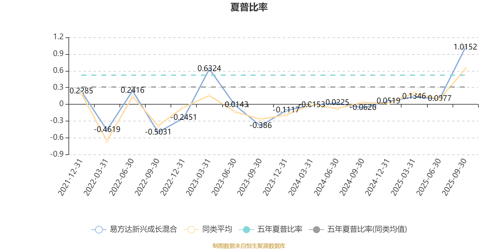 截至9月30日,基金近三年夏普比率为0.8566,位于同类可比基金206/1285。
