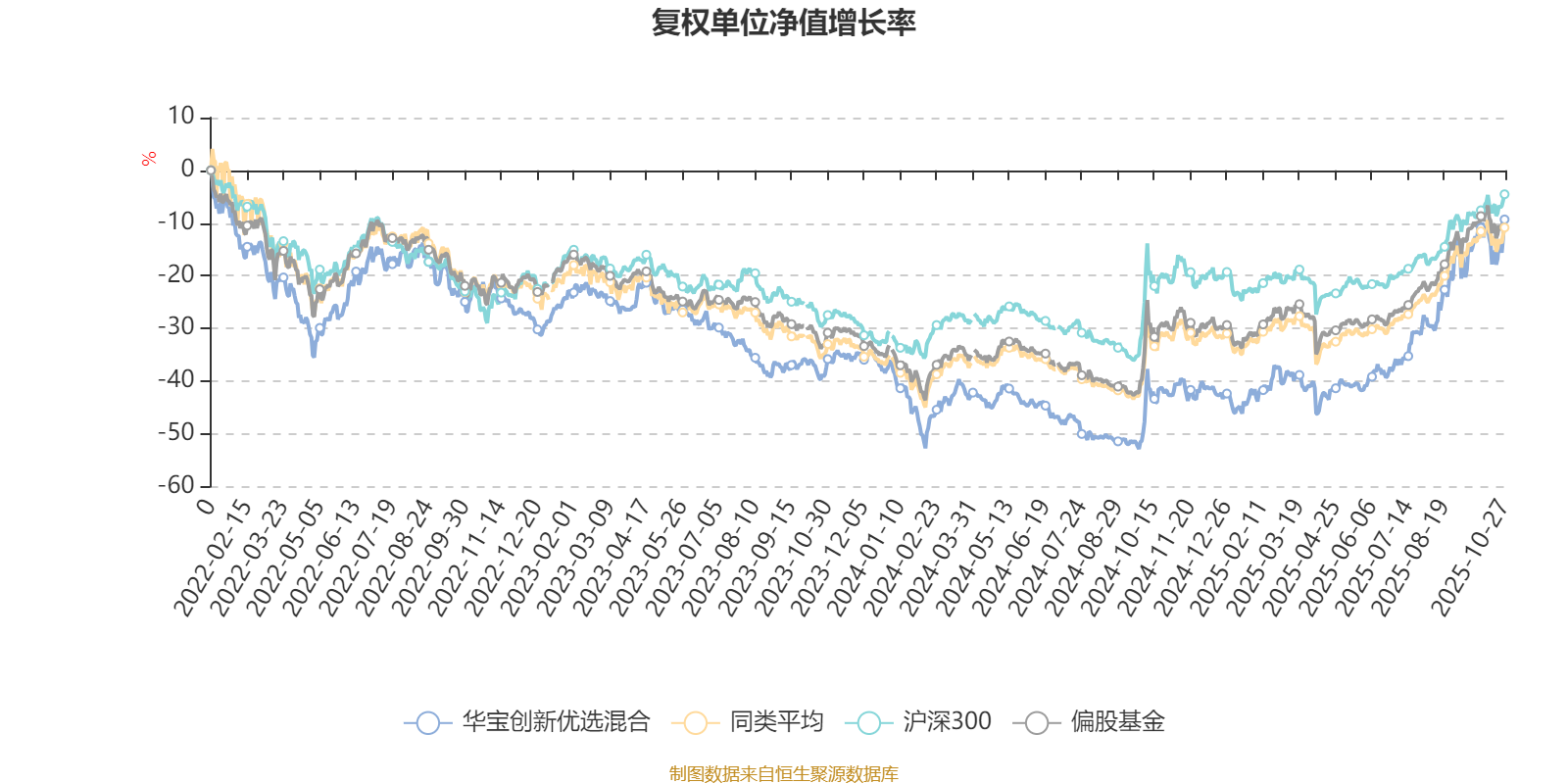 截至10月27日,华宝创新优选混合近三个月复权单位净值增长率为31.77%,位于同类可比基金38/265;近半年复权单位净值增长率为54.61%,位于同类可比基金31/265;近一年复权单位净值增长率为55.77%,位于同类可比基金27/265;近三年复权单位净值增长率为16.99%,位于同类可比基金140/253。