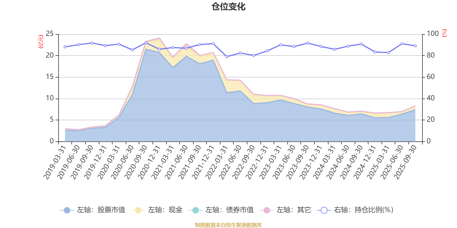据定期报告数据统计,近三年平均股票仓位为87.94%,同类平均为85.91%。2020年三季度末基金达到92.03%的最高仓位,2022年一季度末最低,为79.08%。