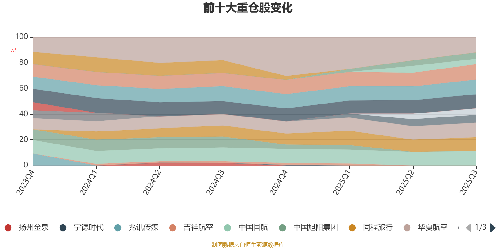 该基金持股集中度较高,近2年前十大重仓股集中度长期超过60%。截至2025年三季度末,基金十大重仓股分别是中国东方航空股份、中国国航、中国南方航空股份、华夏航空、春秋航空、同程旅行、爱玛科技、上海电影、雅迪控股、海信视像。