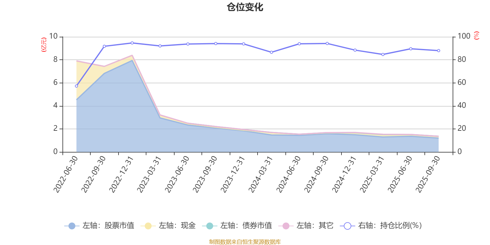 据定期报告数据统计,近三年平均股票仓位为91.13%,同类平均为86.43%。2022年末基金达到94.64%的最高仓位,2022年上半年末最低,为57.25%。