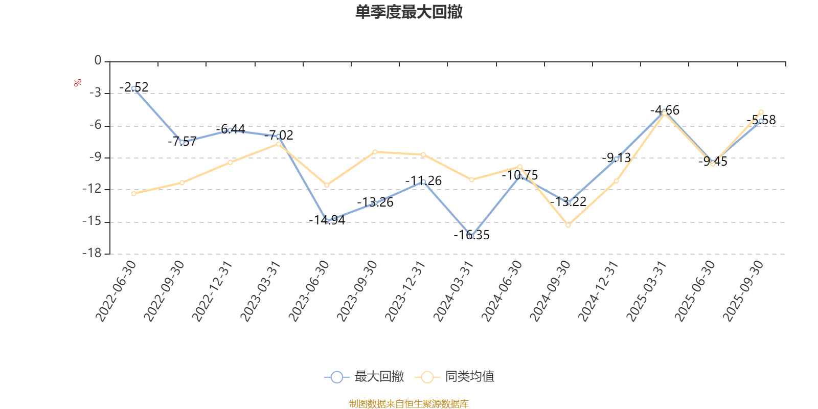 截至10月27日,基金近三年最大回撤为43.11%,同类可比基金排名25/29。单季度最大回撤出现在2024年一季度,为16.35%。