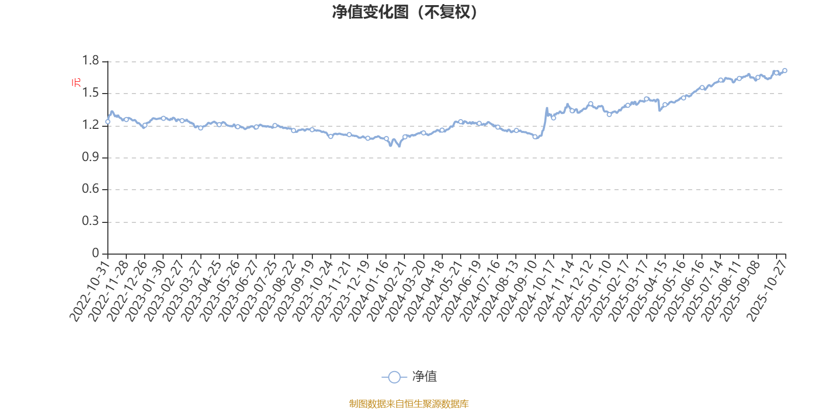 截至2025年三季度末,基金十大重仓股分别是金风科技、江西铜业股份、渤海轮渡、民生银行、光大环境、山东黄金、中国平安、南京高科、物产中大、HTSC。