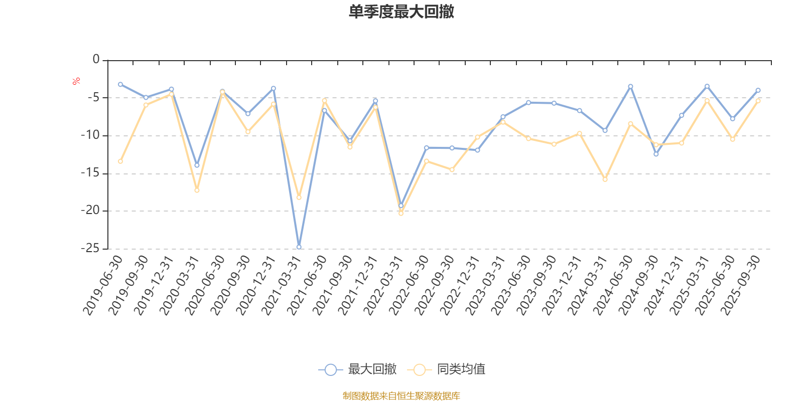 截至10月27日,基金近三年最大回撤为25.24%,同类可比基金排名38/251。单季度最大回撤出现在2021年一季度,为24.75%。