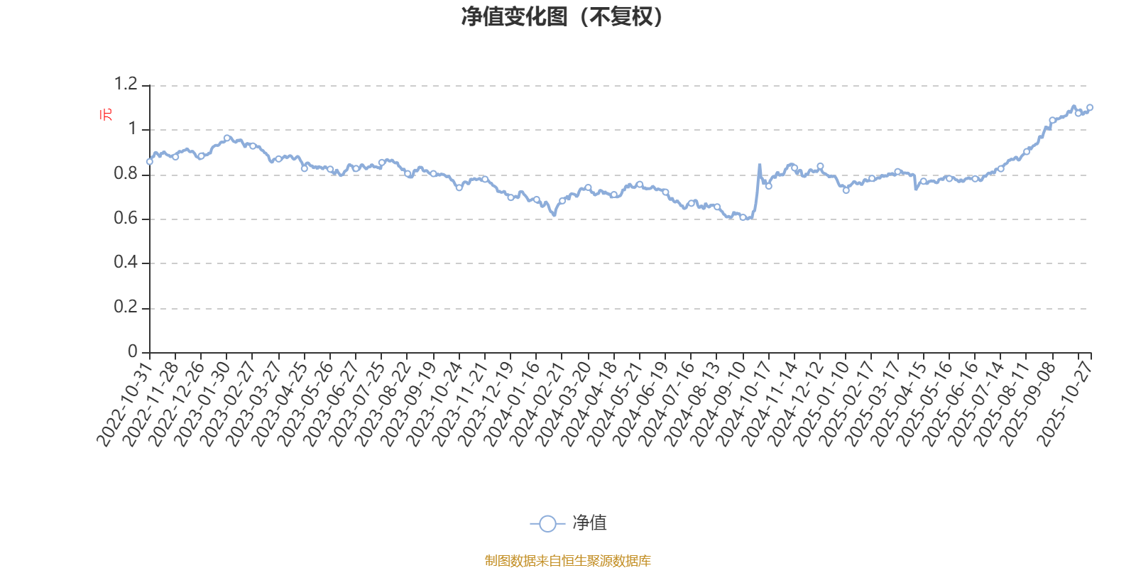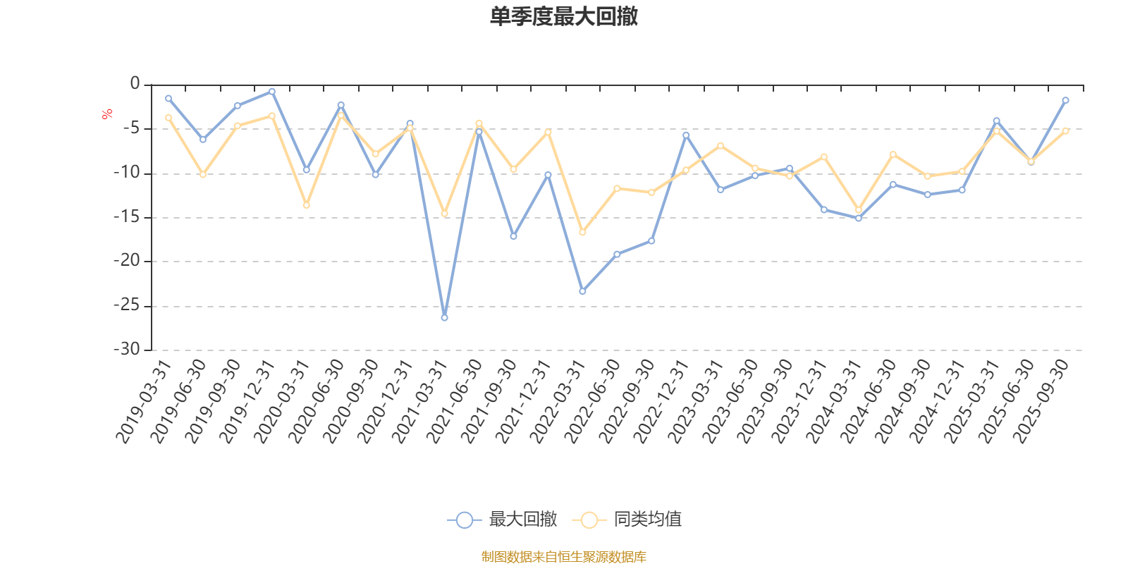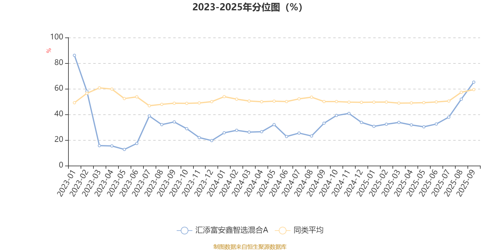 通过所选区间该基金净值增长率分位图,可以观察该基金与同类基金业绩比较情况。图为坐标原点到区间内某时点的净值增长率在同类基金中的分位数。
