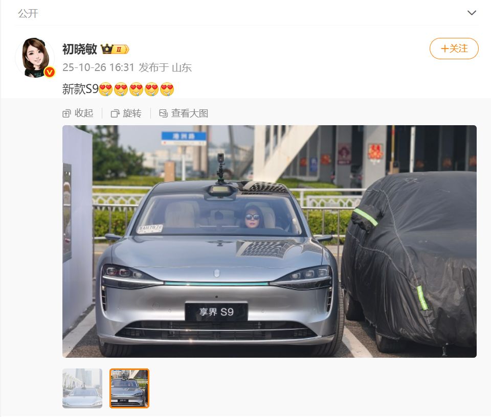 10月26日,博主“初晓敏”分享了该车的外观图。