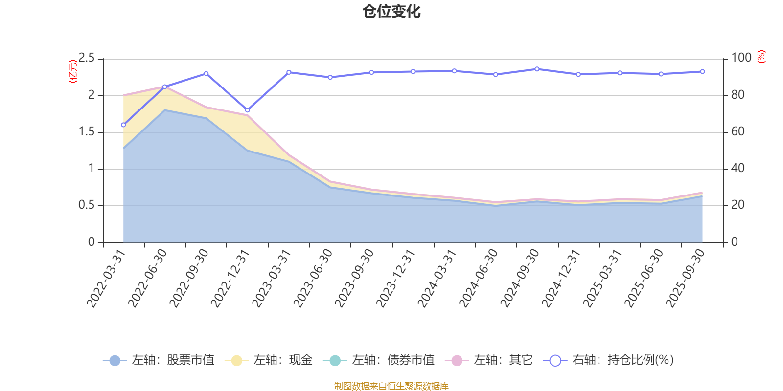 据定期报告数据统计,近三年平均股票仓位为90.6%,同类平均为83.54%。2024年三季度末基金达到94.35%的最高仓位,2022年一季度末最低,为64.03%。