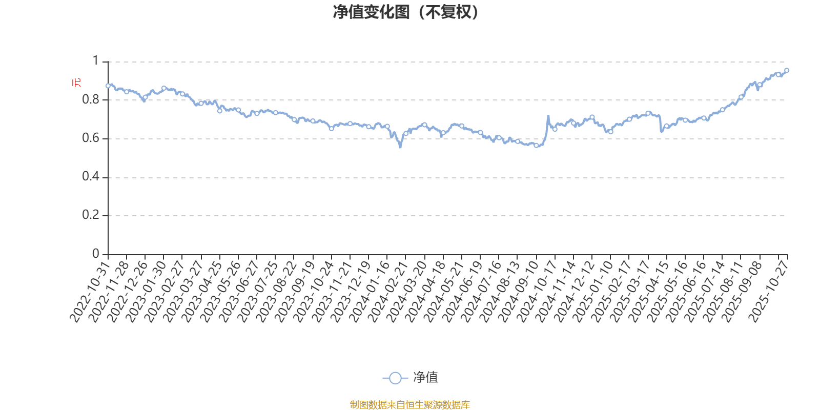该基金属于偏股混合型基金。截至10月27日,单位净值为0.954元。基金经理是王恒楠,目前管理4只基金。其中,截至10月27日,诺德新能源汽车A近一年复权单位净值增长率最高,达43.77%;诺德量化先锋A最低,为41.38%。