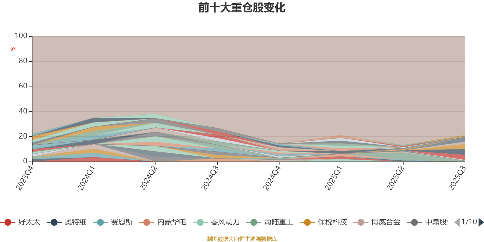 截至2025年三季度末,基金十大重仓股分别是工商银行、招商银行、建设银行、贝壳-W、兴业银行、博实结、赣锋锂业、松原安全、焦作万方、横店东磁。
