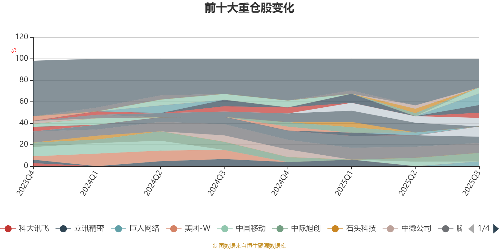 截至2025年三季度末,基金十大重仓股分别是工业富联、ST华通、腾讯控股、中际旭创、中芯国际、阿里巴巴-W、北方华创、新易盛、沪电股份、巨人网络。