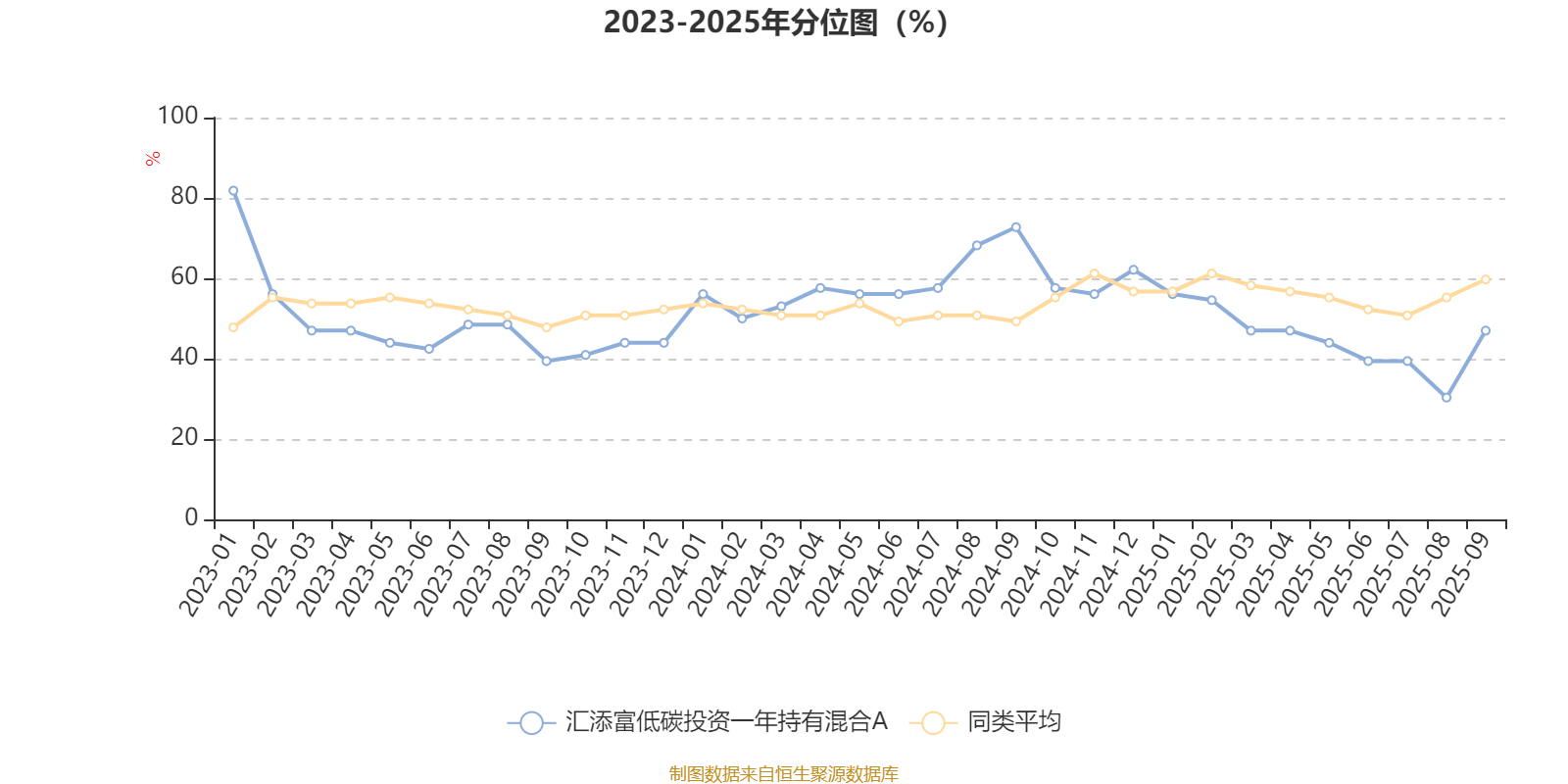 通过所选区间该基金净值增长率分位图,可以观察该基金与同类基金业绩比较情况。图为坐标原点到区间内某时点的净值增长率在同类基金中的分位数。