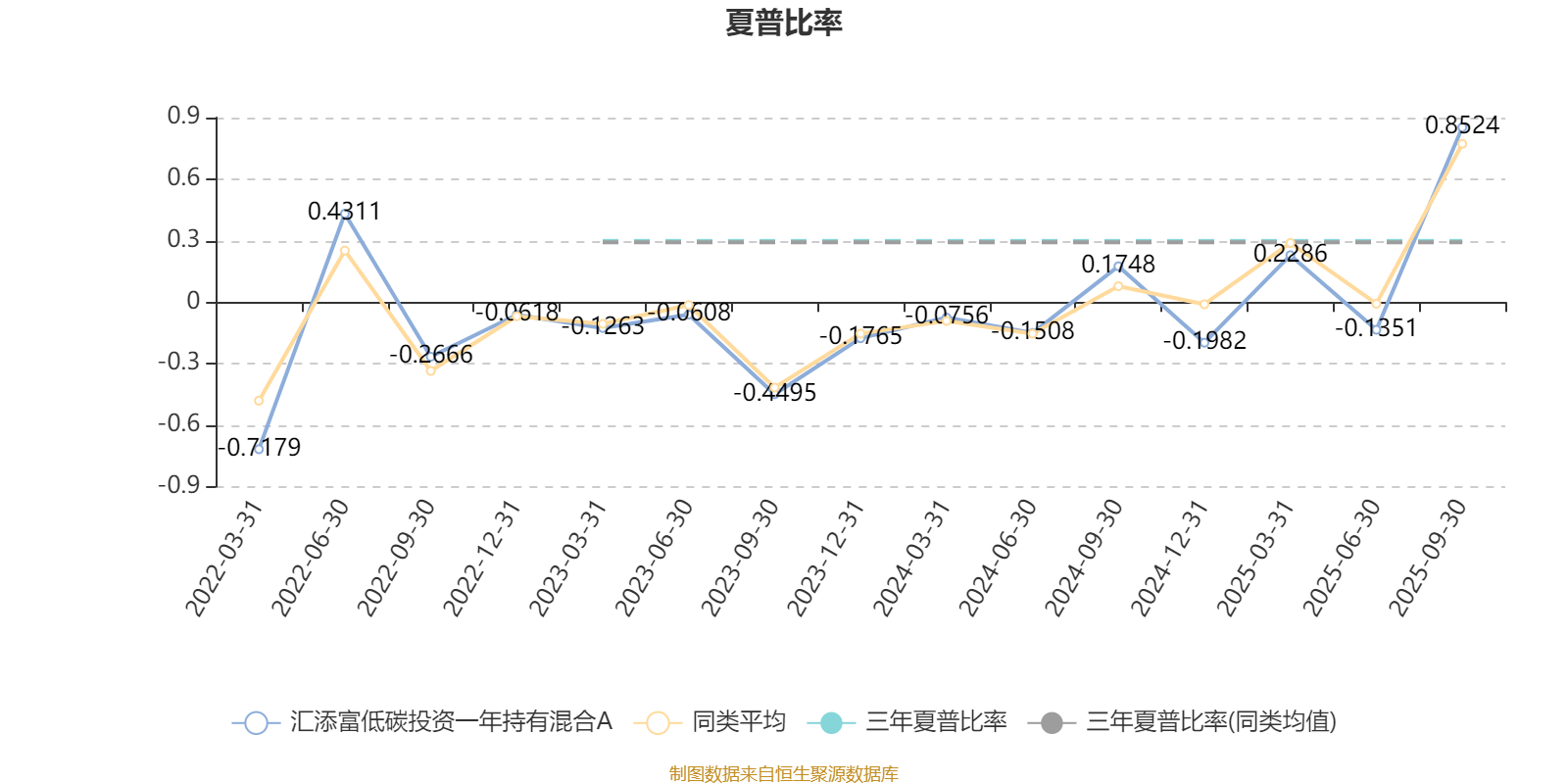 截至9月30日,基金近三年夏普比率为0.2981,位于同类可比基金30/60。