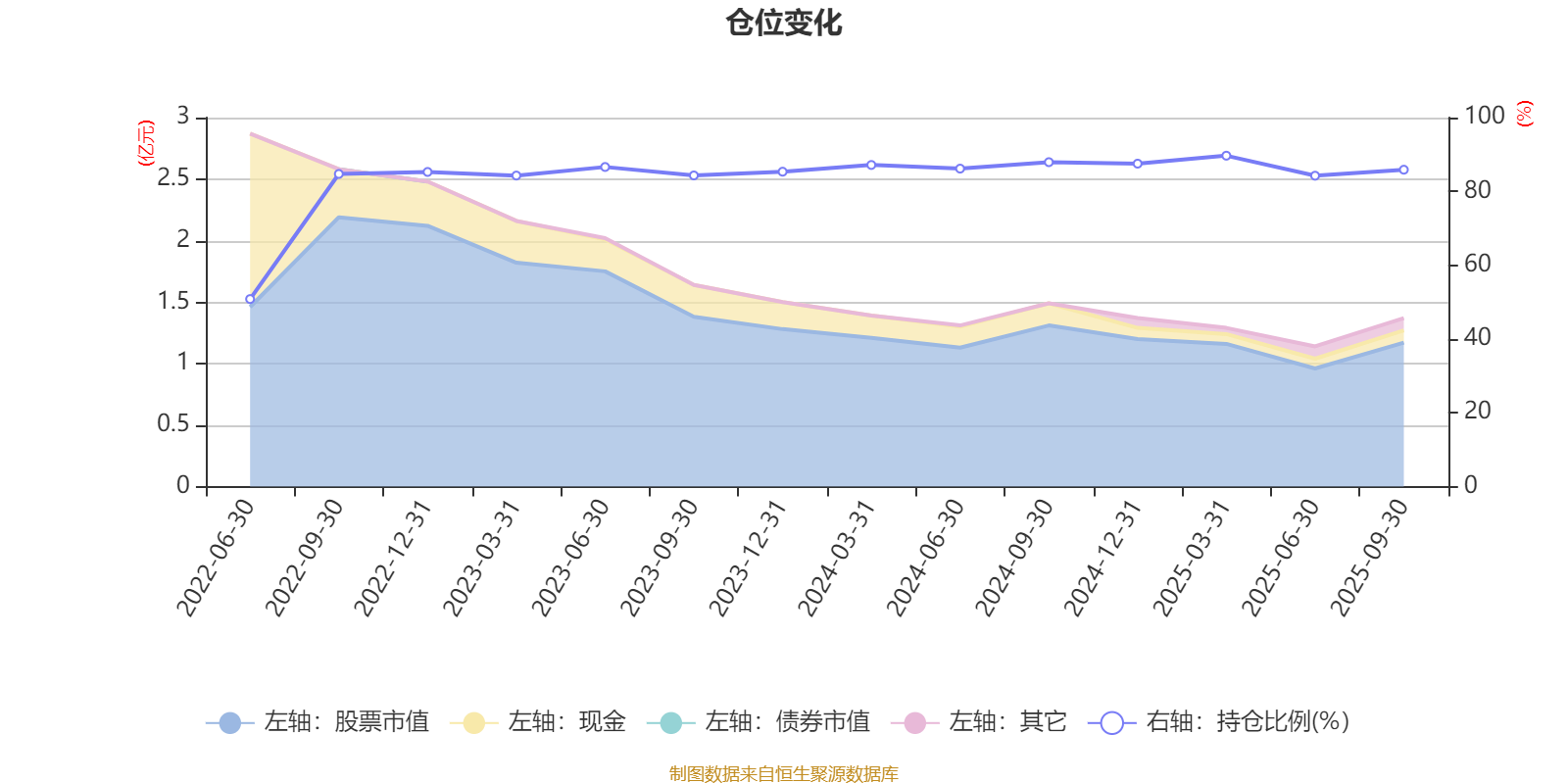 据定期报告数据统计,近三年平均股票仓位为86.2%,同类平均为87.09%。2025年一季度末基金达到89.68%的最高仓位,2022年上半年末最低,为50.82%。