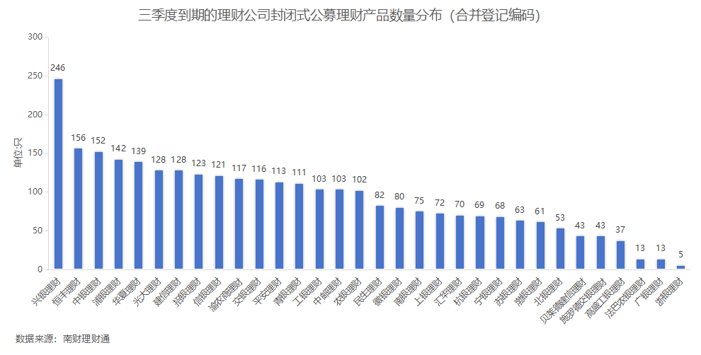 分机构来看,兴银理财到期公募产品数量超200只位列第一,恒丰理财和中银理财到期产品数量也超150只。浙银理财在2025年上半年无产品到期,三季度有5只产品到期。
