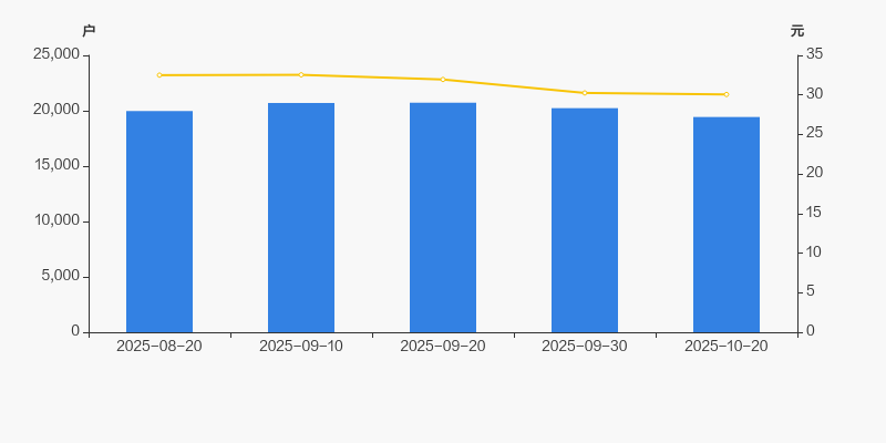 2025年8月20日至今,公司股东户数有所下降,区间跌幅为2.69%。2025年8月20日至2025年10月20日区间股价下降7.51%。